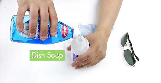 Add one or two drops of dish soap to any mixture for extra clarity once the lenses are wiped. This works the same as cleaning lenses under running water with dish soap. Add a little bit of soap to a ready-made bottle of diluted alcohol to get that finishing clarity.