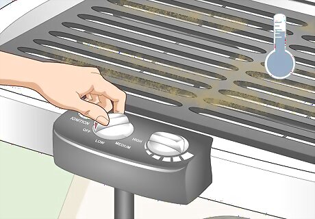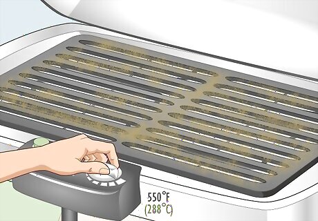 Set your grill to 550 °F (288 °C). Turn the knobs on the front of your grill clockwise to heat up your gas grill. Choose a high temperature, so any stuck-on residue will begin to burn. Don’t leave your grill unattended after turning it on.