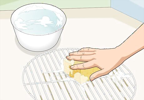 Use a sponge to clean off the grate with soapy water. Dip your sponge into the sudsy mixture so it can soak completely. Next, wipe down the grate in long even strokes, applying pressure when necessary to remove portions of grease. If necessary, soak the sponge in the bucket multiple times to clean the grate more thoroughly.