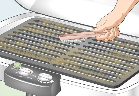 Scrub the grates with a steel brush. Take your steel-bristled brush and begin rubbing over the spray. As you clean, try applying a bit of elbow grease to the brush to get better results. Work from left to right, so you can clean off the entire grate.
