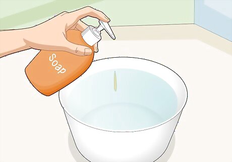 Mix a pea-sized amount of dish soap into a bucket of warm water. Fill a plastic bucket halfway with warm water, and set it near the charcoal grill. Next, squeeze a small amount of dish soap into the warm water. Mix the soap with a stirring utensil until you see suds forming. You don’t want to use a harsh cleaner on your charcoal grill grates. When cleaning off tough surfaces like a grill grate, you might want to wear rubber gloves.