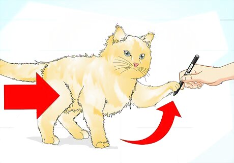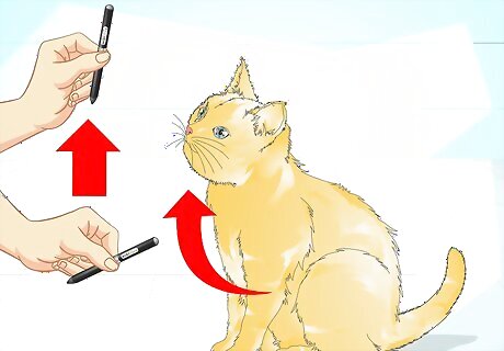 Try again several times. Once he’s finished his treat, bring up the target again and click when he makes any movement towards it. Immediately give him a treat. He will start to associate the target with the treat, and will try different movements to get that treat. If the cat is only looking at the target, move the target closer to its face. Most cats will lean in to sniff it. As soon as the cat does this, click and then reward.