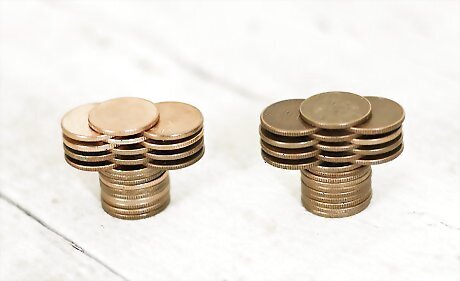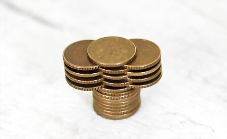 Make a stack of 10 pennies. Put your palm around them, to make sure that they are stacked evenly on top of each other.