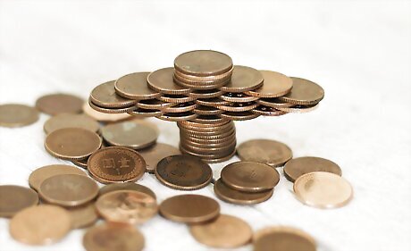 Create a triad and carefully place it on top of the stack of ten pennies.