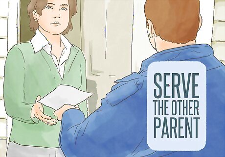 Have the other parent served. After your forms are filed, you must provide the other parent with legal notice that you have filed a lawsuit against him. Typically you can serve the other parent using certified mail, or personal service through the sheriff's department or a private process serving company. If you don't know where the other parent lives or how to serve him, ask the clerk about your county's process for constructive service.