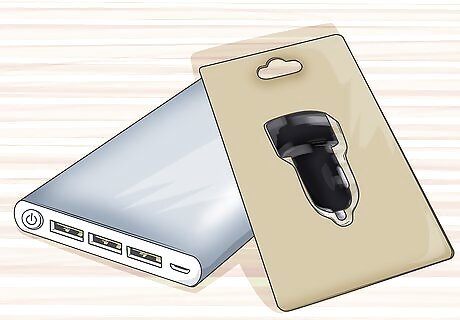 Buy a backup battery and car charger for your phone. During a major storm, you'll want your phone to have power at all times. To make sure this happens, purchase a backup battery in case your phone runs out of juice and keep a car charger in your vehicle in case your house loses power.