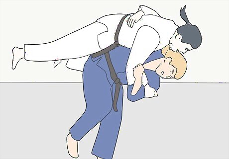 Develop techniques based on your body type and personal preferences. It is vital to thoroughly develop these as you train, in order to be able to quickly respond to the myriad situations that can happen. Have a handful of throws you specialize in, but be familiar with commonly used throws. Practice being able throw in all directions and modifying your throws against all types of opponents. Do not excessively favor your dominant side. Prepare for frequent falls, as tournament judo means you will often be upside down or in awkward positions. Example throws include the floating hip, shoulder throw, and single back throw.