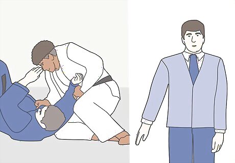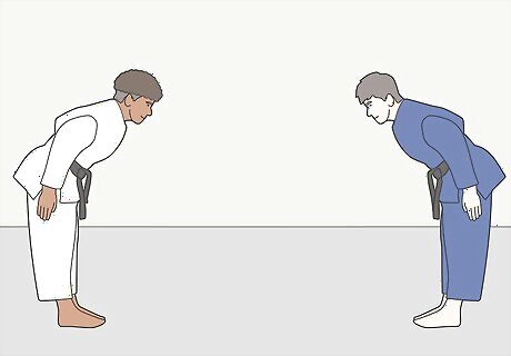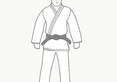 Ensure you have a gi to wear. A gi is a traditional uniform descended from Japanese garments like the kimono. It should be durable enough to not rip, and must be no higher than 5 cm (2.0 in) above extended wrists and ankles. Wrap a belt around the jacket and tie with the traditional knot.