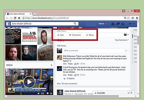 Comment on his post. If you don't have a tip for Walsh, you may still comment on his latest cases. When you comment on one of his posts, you will become an active participant in the conversation with other interested parties. Walsh may or may not read your comment. Also, note that there is no comment box on the John Walsh page, though, so you cannot post a comment directly to his wall. Go to Walsh's official Facebook page. Scroll through his post until you see one of interest to you. Directly under the content of the post, you will see three buttons: “Like,” “Comment,” and “Share.” Click on “Comment.” Type your comment in the activated text box next to your profile picture. Once your comment is complete, press the “Enter” key on your keyboard or the “Post” button on your phone or tablet screen to post it to Walsh's wall.