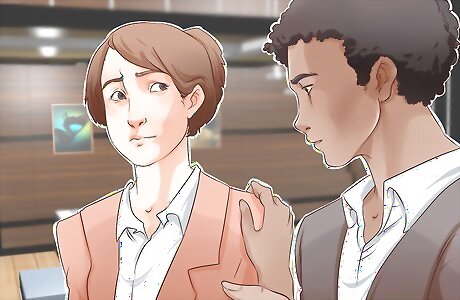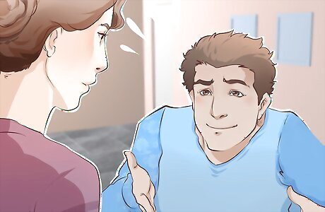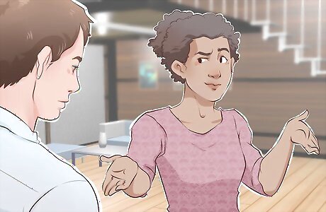 Be conscious of your body language. Many people don't think about their own body language, but most people recognize body language cues (both conscious and unconscious) in other people. If you avoid eye contact, turn your body away from the person talking to you, and cross your arms across your body, it conveys a lack of interest or an unwillingness to listen. Face the person you're talking with, and make eye contact while you chat.