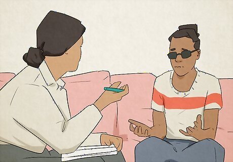 See your doctor. If you persistently deal with depressive and suicidal thoughts, you should alert your physician immediately. Your doctor can help you find resources in your local community to help with the adjustment. Call your doctor's office right away for an appointment to discuss your suicidal thoughts and feelings. If your thoughts are pressing or intense, then call 911 or go to an emergency room for help and to get an immediate psychiatric evaluation. Your doctor can refer you to a therapist who can help you to work through your thoughts and feelings. They can also help you to develop new coping skills, adapt to your new way of living, and connect with other people who are blind or visually impaired. Your doctor may also refer you to a psychiatrist if they think that you may need medication to improve severe depressive symptoms, but medication is usually a last resort.