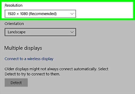 Adjust the resolution. Use the slider bar to match the resolution to your monitor’s native resolution. You can also try the recommended settings if you weren’t able to find your monitor’s native resolution. Some common native resolutions are: 800 x 600 1024 x 768 1920 x 1200 1680 x 1050