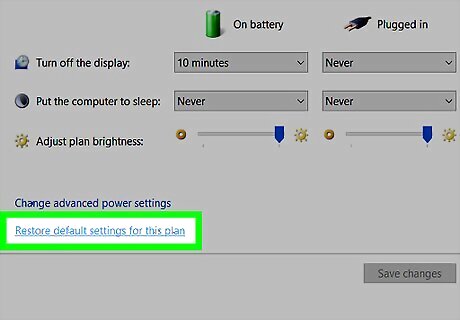 Restore default power settings. The power settings tell the computer when to turn the display off after a period of inactivity and when to put the monitor to sleep, and they control the brightness based on certain factors. To reset to the original settings, go to Control Panel > All Control Panel Items > Power Options > Change Plan Settings > Restore Default Settings. Select Save Changes.