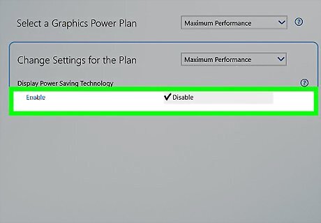 Disable Intel Power Saving Technology. This function, which is available on certain computers with Intel processors, is designed to reduce energy consumption by optimizing the picture contrast. Unfortunately, it can sometimes cause issues with the display, and turning it off may fix your problem. From the Start menu, select Search, and look for “HD Graphics Control Panel.” Click Power > On Battery, and under Display Power Saving Technology, click disable. Click Apply, then OK, and then restart your computer.