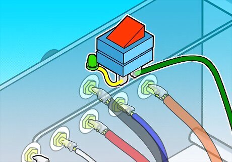 Connect the POWER ON (usually GREEN) wire to one side; Connect the other side to the negative side of the LED and GROUND (so, the "out" side of the switch is connected to two wires ... the one coming "out" of the LED and the GROUND bundle).