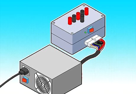 "Harvest" a power supply from a computer by opening up the case of the computer, locating the gray box that is the power supply unit, tracing the wires from the power supply to the boards and devices and disconnecting all the cables by unplugging them.