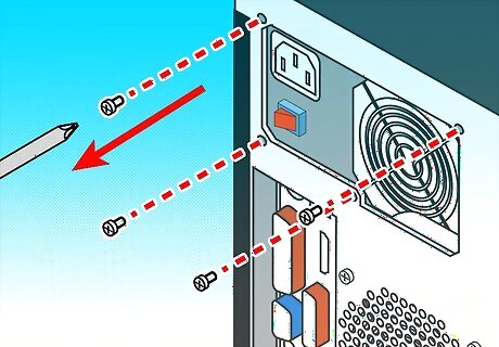Remove the screws (typically 4) that attach the power supply to the computer case and remove the power supply.