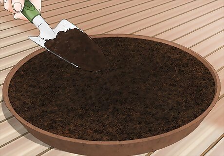 Fill the dish almost to the top with planting soil. Use an appropriate soil mix for the type of plants you want to grow. Fill up the dish to about ⁄4 in (0.64 cm) from the top of the rim to leave enough room for the plants and finishing touches. For example, if you want to create a succulent dish garden, then use cactus soil mix. If you want to grow other types of indoor plants, then use a standard peat-based potting mix. If you aren’t sure what the best soil to use is, then ask the employees at a gardening center to help you choose.