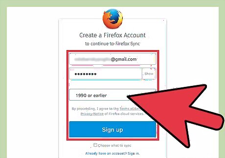 Enter a valid e-mail address, password, and your birth date. This is all you need to create an account. Hit "Next" when you’re finished. By default, Firefox will sync all the data in your browser to your account. If you want to select which one to sync, check the option “Choose what to sync.”