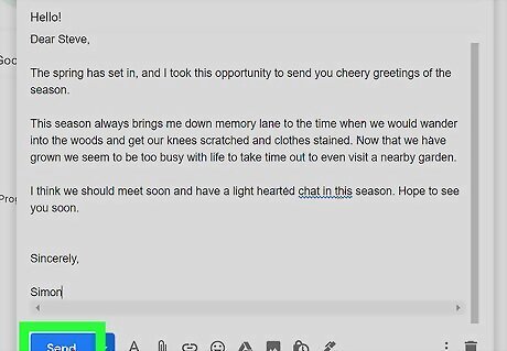 After double-checking for errors, click Send. Make sure your contact's email address is correct, and that your message contains no spelling mistakes or formatting errors. Send your email.