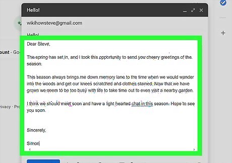 Type the message, or body, of your email. This is your communication or what you want to explain to the other person.