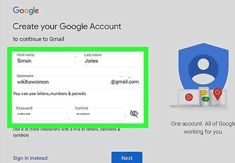 Follow all the instructions on the page, filling out all the needed details. Most email services ask for your name, birthdate, and gender. Some may ask for a phone number and address, but this isn't super common. If the email provider you're signing up with is asking for a phone number or address and you're not comfortable giving that out, consider trying a different email provider.