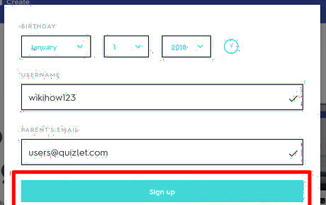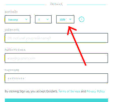 Enter your birthday. Your birthday has to be your real birthday. Quizlet allows all ages to participate, but you must use your real date of birth to comply with local laws.