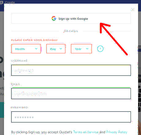 Wait to be redirected back to the original sign up page. Enter your birthday. Your birthday has to be your real birthday. Quizlet allows all ages to participate, but you must use your real date of birth to comply with local laws.