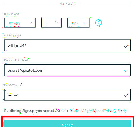 Click the blue box that says Sign up. Only do this after you have completed everything. You are finished! You will now be redirected to the Quizlet homepage.