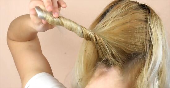 Put the hair into a low ponytail. Gather your hair into a low ponytail. Secure the ponytail with an elastic. Leave out the extra strands of hair or pull a few out for a messier look. Finish the ponytail with hairspray.