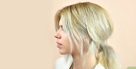 Add volume and more texture your hair. Use a texturizing powder on the front sections of your hair. Work the powder into your roots. Once you're done pull those sections into a loose, low ponytail.