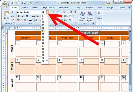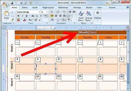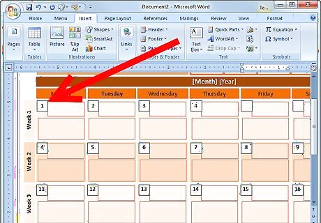 Modify the dates. The dates and days of the week are already there for you; they just may not be accurate yet. Change the dates so that they are accurate.