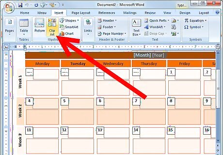 Locate the "Month" and "Year" spaces at the beginning of the custom-made calendar. Type in the month in the "Month" space and year in the "Year" space.