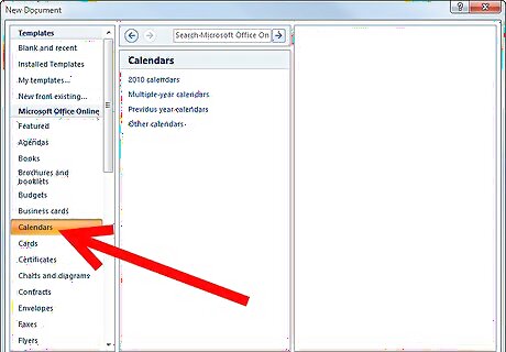Go to File >>> Project Gallery. Once you get there, click on "Calendars" from the Category sidebar.