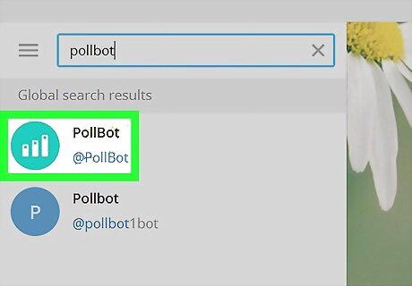 Click PollBot. It should be the first search result. This opens a conversation with PollBot.