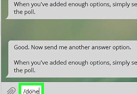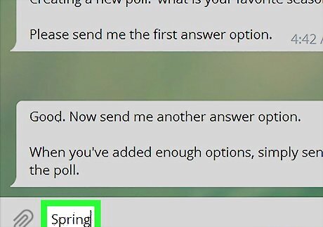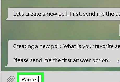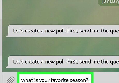 Type the poll question and press ↵ Enter or ⏎ Return. PollBot will ask for the first possible option/answer.