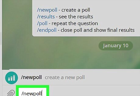 Type /newpoll and press ↵ Enter or ⏎ Return. PollBot will ask for the poll question.