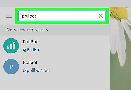 Type pollbot into the “Search” box. It’s at the top-left corner of the screen.