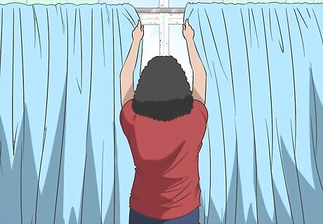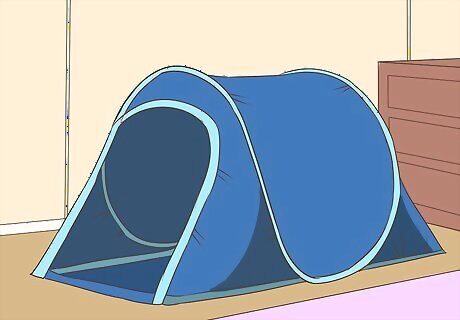 Open a pop-up tent. If you want privacy from time to time, a pop-up tent is great option for your dorm room. Unlike traditional camping tents that require stakes to assemble, these tents stand on their own so you can put it up anywhere in your room. When you want some private time, you only have to climb inside. The rest of the time, you can choose to leave the tent assembled - or take it down, fold it up, and stash it under your bed. Some pop-up tents are designed to fit around a bed, so you can privacy when you’re sleeping or just sitting on your bed reading. Other pop-up tents are placed on the floor, so you can have private space anywhere in your dorm room. The tents usually have zip-out windows that you can open when you feel like being more social or just need some air.