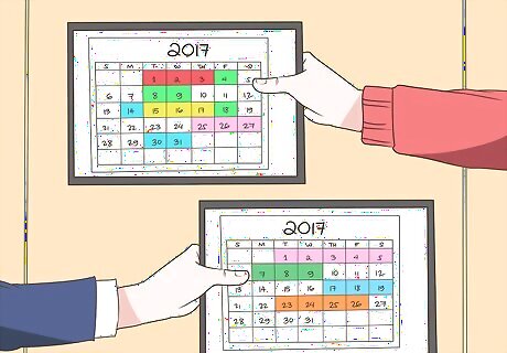 Exchange schedules. If you want to have private time in your dorm room, it helps to discuss each other's schedules with your roommates. You’ll want to know when they’ll be at class or work, and they’ll probably want to known the same about you. That way, if you need some time alone, you’ll know when the room will be free. If you and your roommates are usually out of the room at the same time for classes, work, and other activities, you may want to create a schedule that allows you each to have some alone time in the room each week. For example, you might agree to go to the library for a couple of hours on Monday evenings so your roommate gets the room, while they agree to head to the gym for a workout on Wednesday nights so you can have some alone time. You may also want to discuss whether you and your roommates tend to stay up late or wake up early so you can be respectful of one another’s schedule.