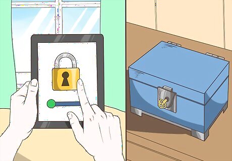 Protect your belongings. Hopefully, you’ll be able to trust your roommates so you don’t have to worry about your things. But if you’ve only just met them, you may not be sure that they’ll respect your privacy. That’s why you should make sure to enable passwords on your phone, computer, tablet, and any other electronic devices that you keep in the room. If you have other items, such as clothing, jewelry, or books, that you don’t want them to have access to either, you may want to invest in a trunk or footlocker that you can lock. Make sure that you don’t share your electronic passwords with anyone. Don’t write them down on papers that you keep in the room, either. If you have a trunk or footlocker with a lock, keep the key in your wallet or book bag so you know it’s always with you.