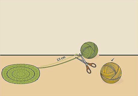Leave a 6 in (15 cm) tail if you want to switch colors. Cut the yarn 6 in (15 cm) from the last stitch. Pull the end of the yarn through the stitch. Then, tie a knot through the last stitch using this tail. Do not cut the tail. Switch colors before starting each additional round for a colorful square. Do not switch yarn colors at all to make solid color granny squares. Just keep working the next round using the same strand of yarn.
