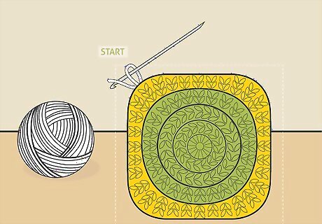 Attach the new yarn to the corner of the square. To expand the size of your granny square, start a new round. Tie off and cut the old yarn, make a slipknot with the new yarn, and attach the yarn to a corner of the square just as you did the first time.