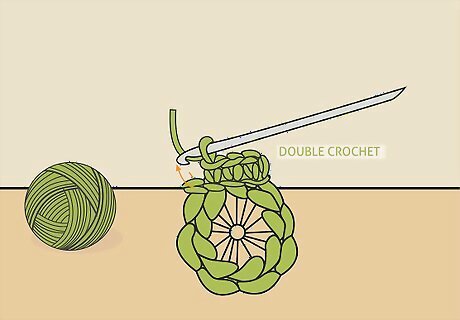 Work 2 double crochet stitches into the center of the ring. Loop the yarn over the end of the crochet hook and then insert the hook into the center of the ring. Yarn over again and pull through the first loop to lock the stitch around the edge of the ring. Yarn over again and pull through 2 to complete the stitch. Repeat this 1 more time.