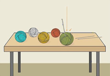 Choose your yarn and crochet hook. Use any type of yarn you like to create granny squares. Select a crochet hook that will work with the yarn you choose to ensure that the stitches are not too loose or too tight. Check the yarn label for crochet hook size recommendations. For example, if you opt for a medium-weight yarn, then use a US size I-9 (5.5 mm) crochet hook. How to Choose Your Blanket’s Color Scheme Create a bold color scheme with a mixture of black, white, yellow, red, blue, green, orange, and purple yarn. Make a light, bright blanket with pastel-colored yarn, such as baby blue, light pink, lavender, pale yellow, mint green, and white. Go for an ombre effect with yarn in different shades of the same color, such as navy blue, royal blue, periwinkle, and baby blue.