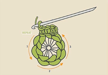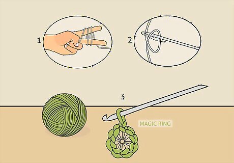 Make a magic ring. Wrap the tail of the yarn around your index and middle fingers 2 times. Then, insert the crochet hook into the center of the hook and yarn over. Pull this loop through the center of the ring, yarn over again, and pull through to secure the ring.