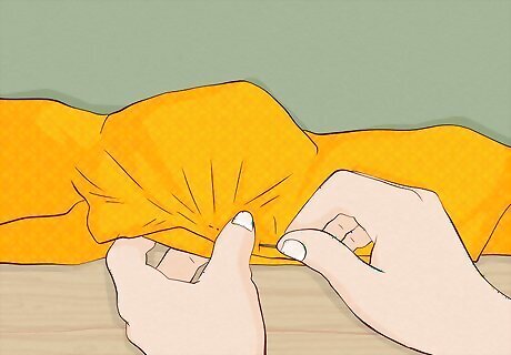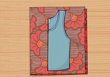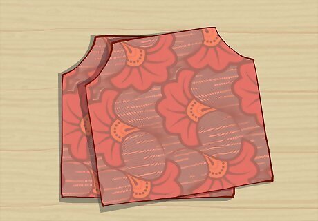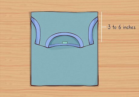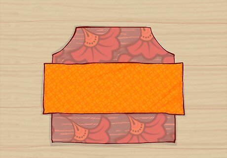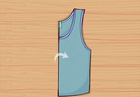 Lay the tank top flat and fold the top 3 to 6 inches (7.6 to 15.2 cm) over. Work on a flat surface and spread the tank top out. Then, hold the top of the shirt and fold it about halfway down the curve of the armholes. Depending on the size of the shirt, you'll need to fold about 3 to 6 inches (7.6 to 15.2 cm) of the shirt towards you.