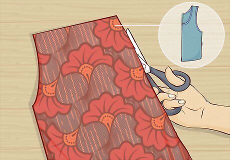 Choose a basic tank top that fits you well to use as a template. Look through your closet for a tank top that fits you perfectly. For example, there should be enough space in the armholes for you to easily get the top on and off, but the holes shouldn't be so loose that they hang too far down the top.Variation: If you don't want to use another shirt as a guide, you can use a purchased blouse pattern. Unfold the pattern and lay it on the Ankara fabric before you pin it into place. If you don't have a tank top that you like the fit of, you can use a long-sleeve shirt that fits well. You'll just need to fold in the sleeves when you pin the shirt. Don't worry about destroying the tank top because you won't need to take it apart in order to pin it.