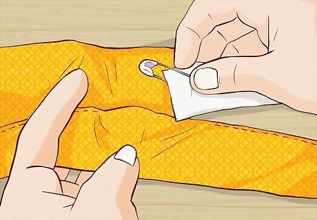 Sew the sides of the body together using a straight stitch. Lay the 2 body pieces on top of each other so the patterned sides of the fabric are facing in towards each other. Pin the sides in place and then use a straight stitch on your sewing machine to sew down the long sides of the blouse. Then, hem around the armholes and along the bottom of the blouse.Tip: Remember to leave a ⁄2 inch (1.3 cm) seam allowance. Try to make a few backstitches before you begin the straight stitches to prevent the stitches from unraveling over time.