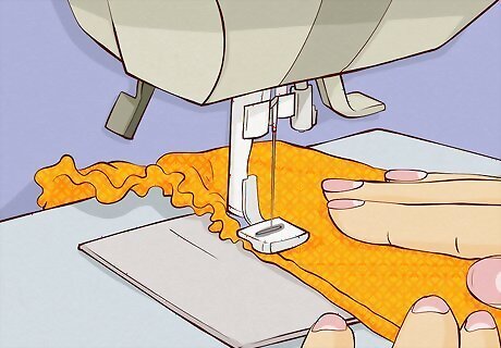 Pin the top edges together and sew them in place with a straight stitch. Keep the top of the body and ruffled piece together with pins and bring the fabric to your sewing machine. Straight stitch all across the top of the blouse and leave a ⁄4 inch (0.64 cm) seam allowance as you go.